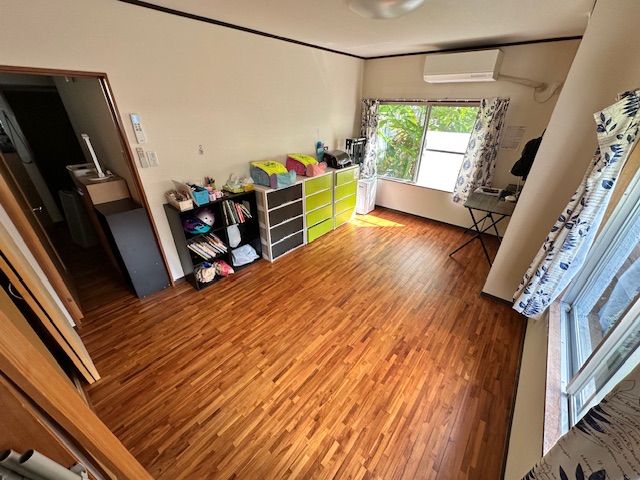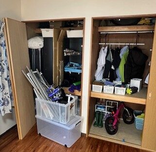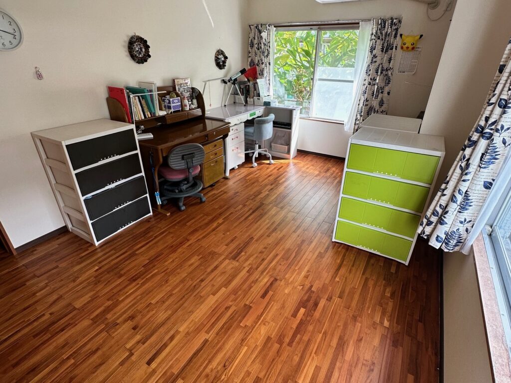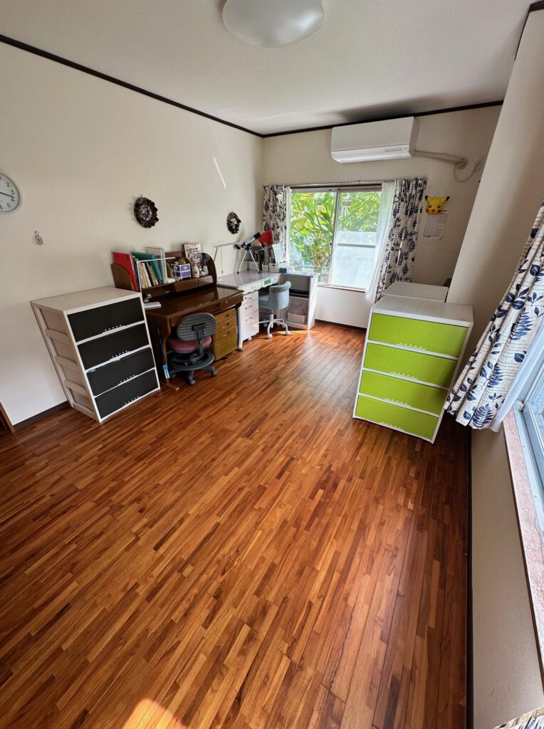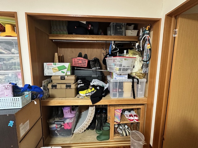 このお部屋は収納が一番大きく、押し入れの中には、お父さんの釣り道具や家族全員の季節外の衣類などが入っていました。