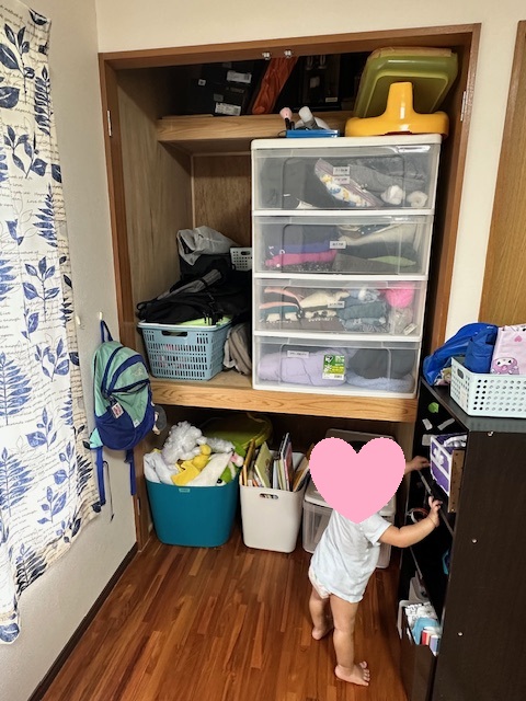 最初の分類で「子どものものだけ」を集めてみると、収納に余裕があることが分かりました。