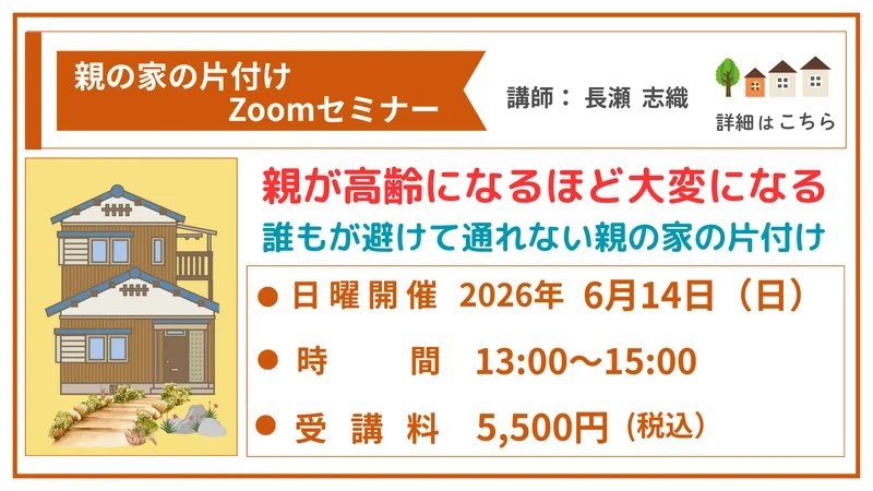 親の家の片付けZoomセミナー、6月開催募集中です!